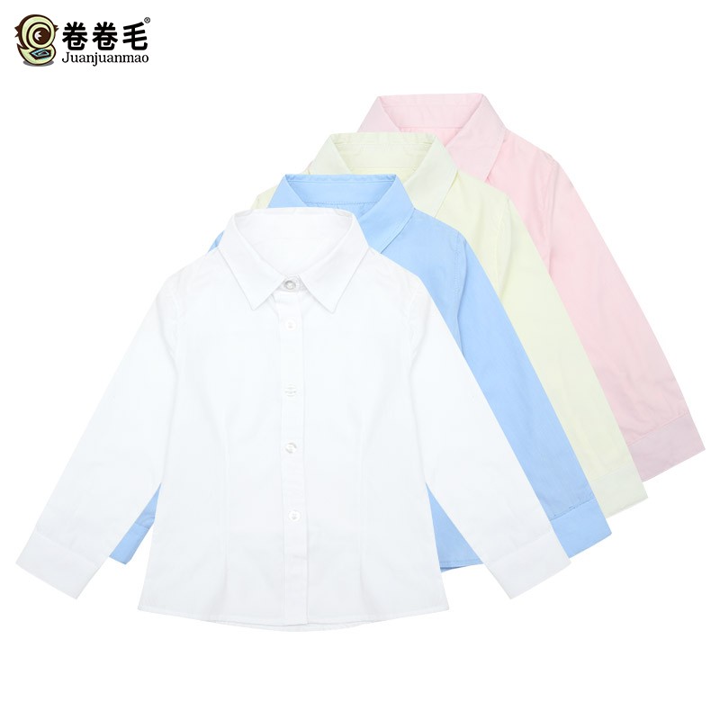 女童长袖白色衬衣童装英伦学院风校服儿童班服春秋装女生纯色衬衫