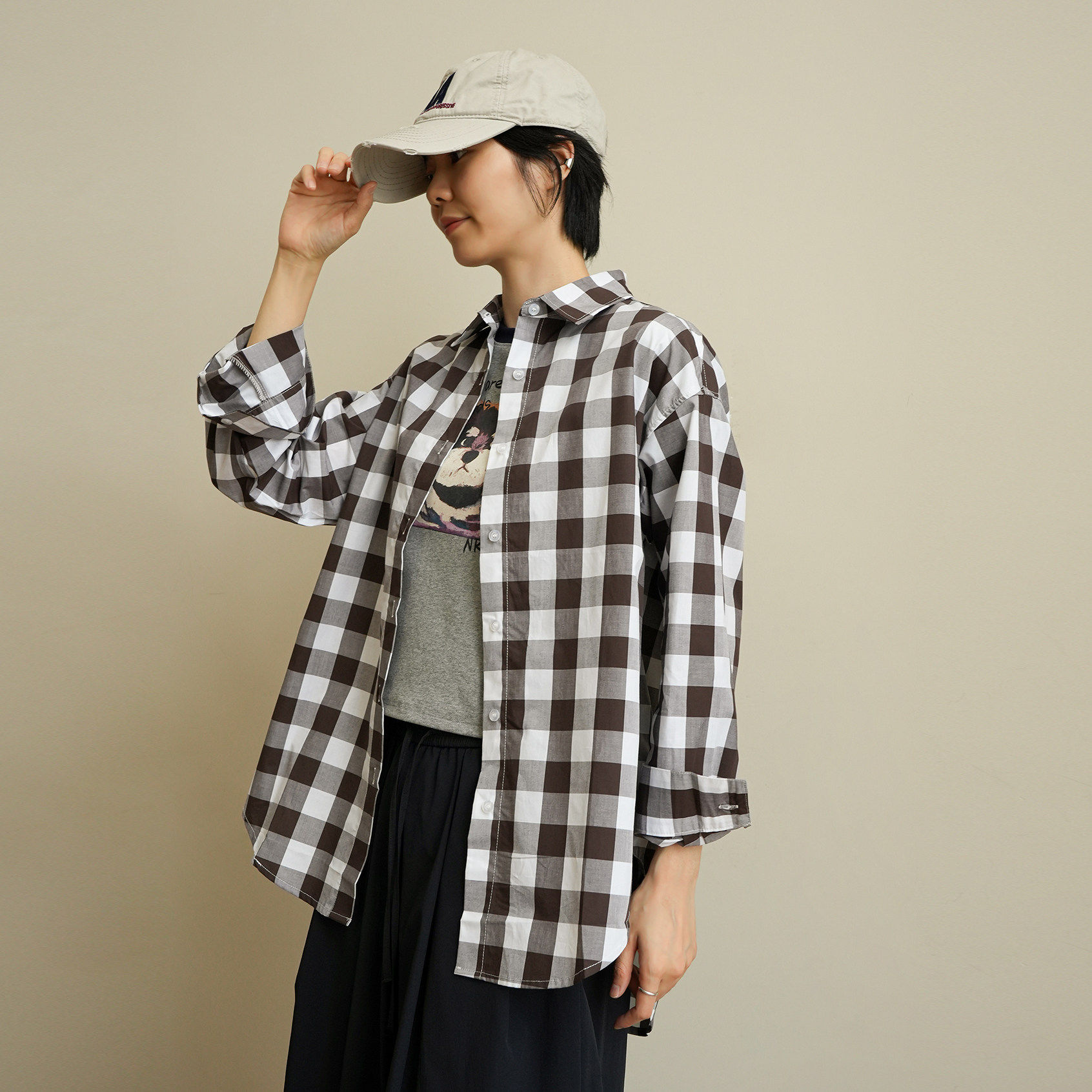 - 格子衬衫女春