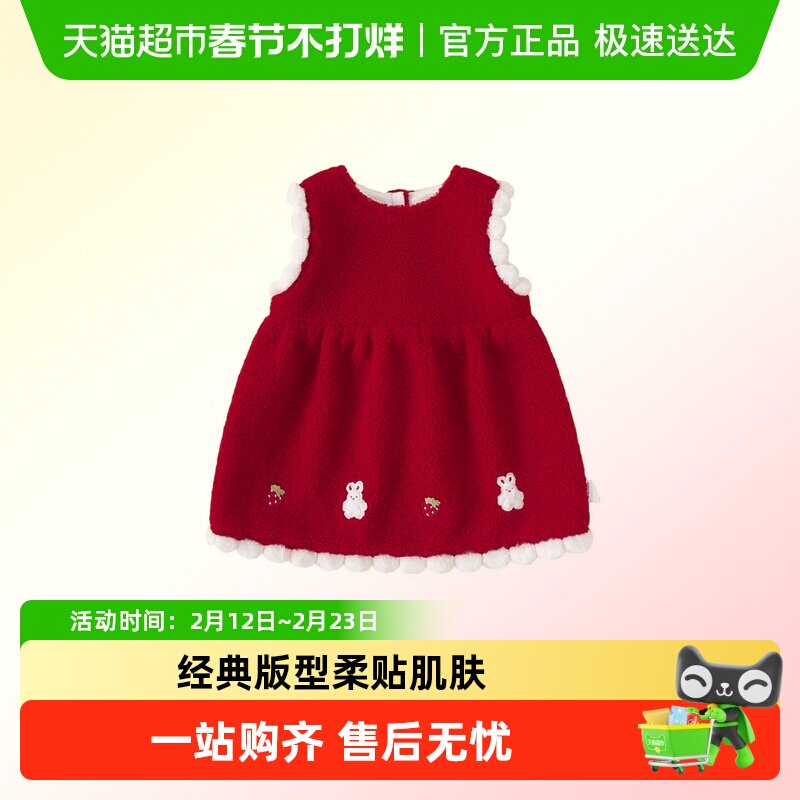 [抑菌锁温]裙子女童连衣裙秋冬加厚宝宝加绒红色冬装裙儿童公主裙