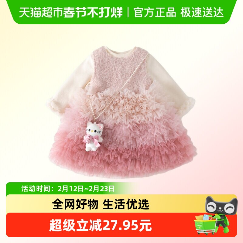 班喜迪女童连衣裙冬装新款儿童加绒加厚公主裙宝宝周岁礼服网纱裙