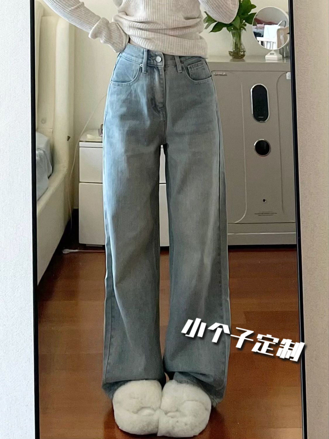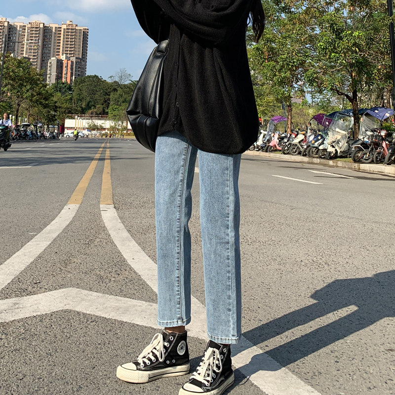 - 韩版高腰直筒牛仔裤女