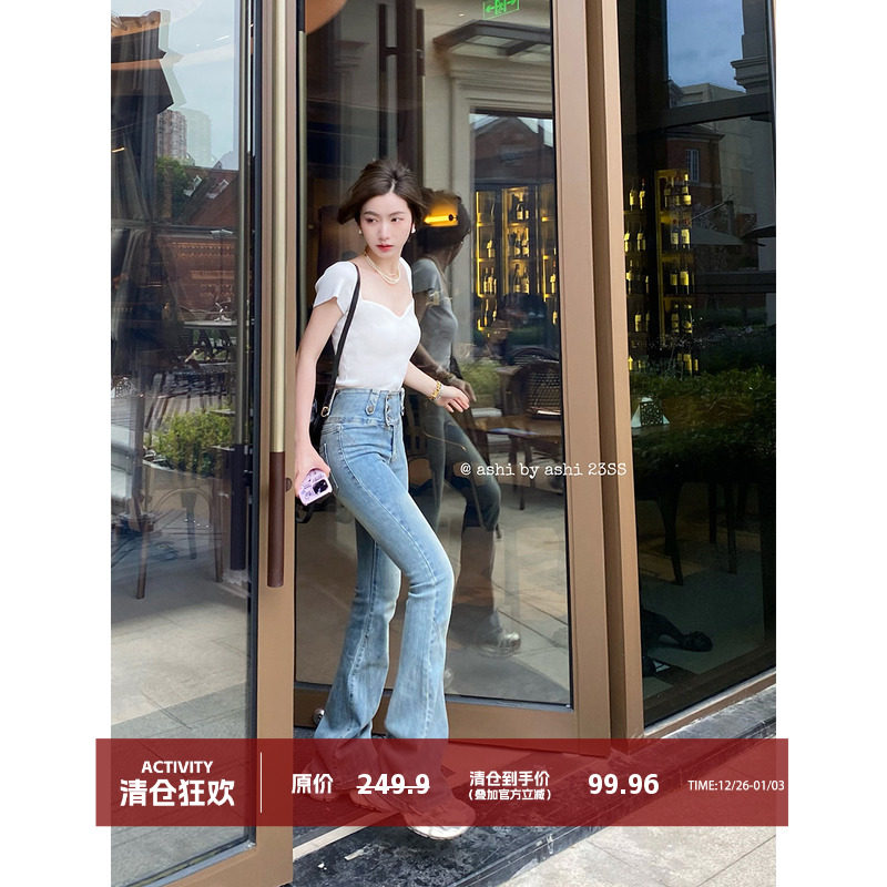- 牛仔裤女微喇叭裤