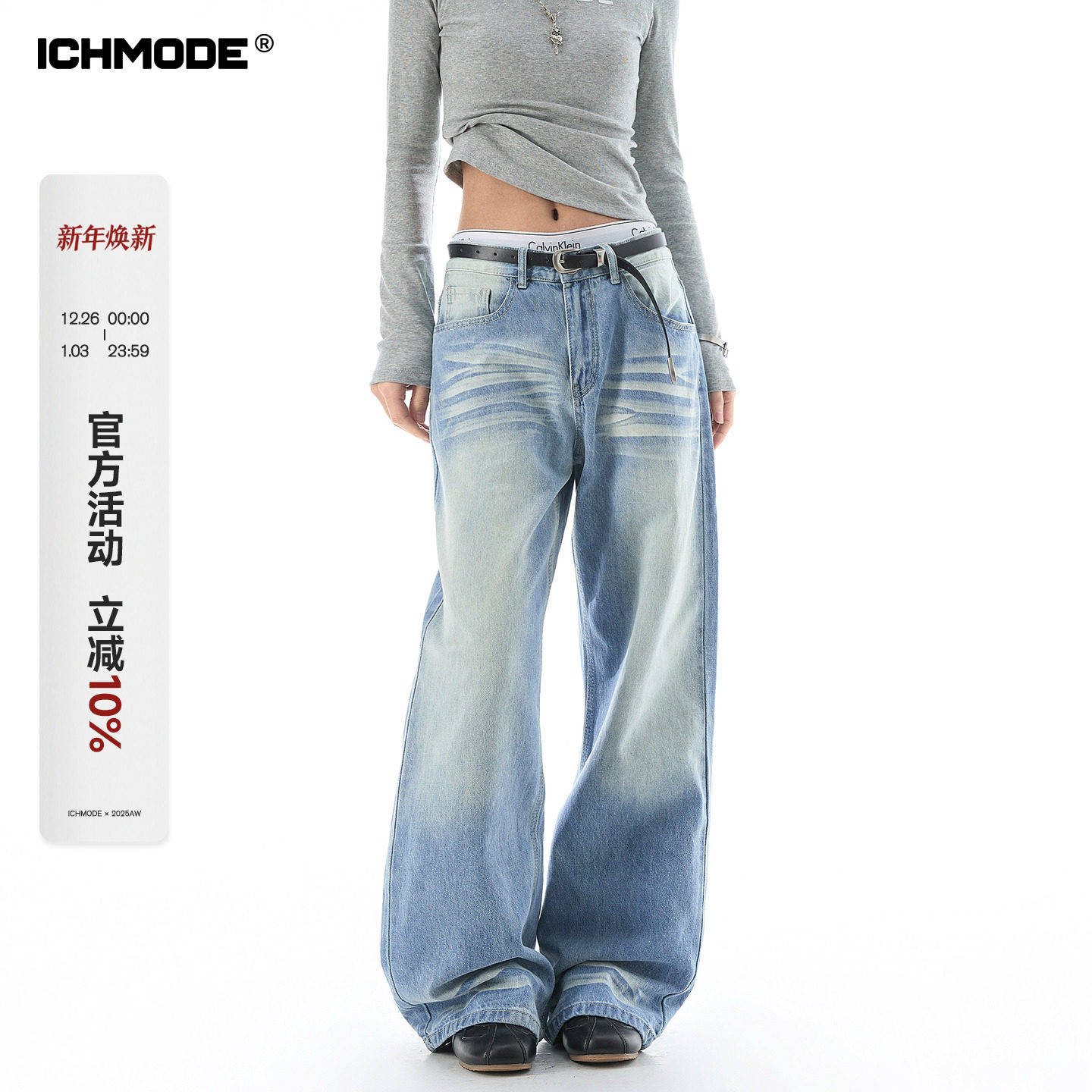 - bf风宽松高腰牛仔裤