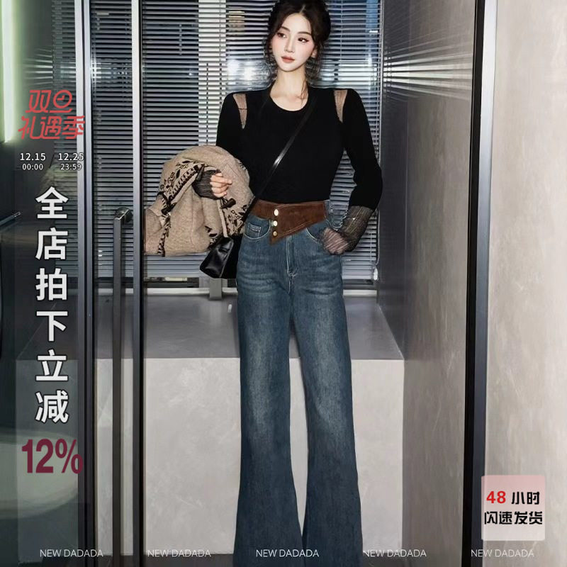 - 韩版微喇叭牛仔裤女