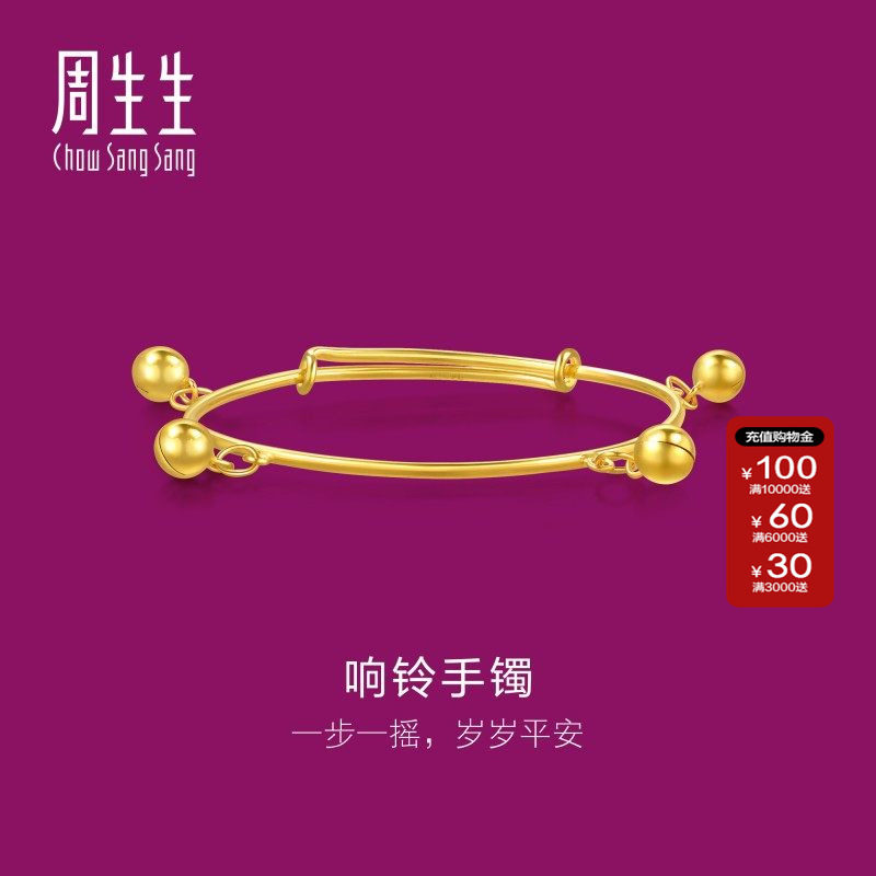 周生生官方正品黄金足金活动响铃BB手镯宝宝黄金手镯13195K计价