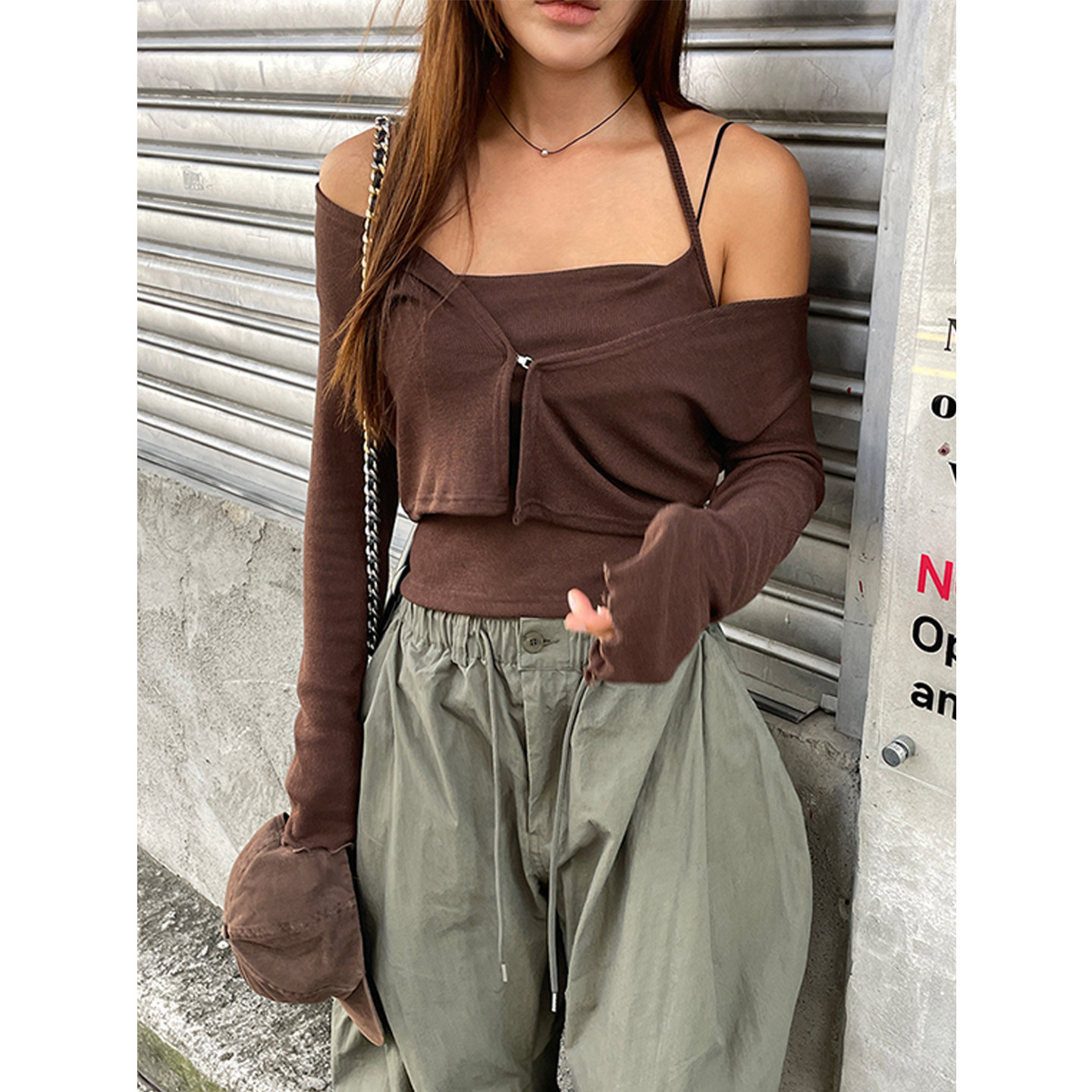 - 开叉长毛衣女