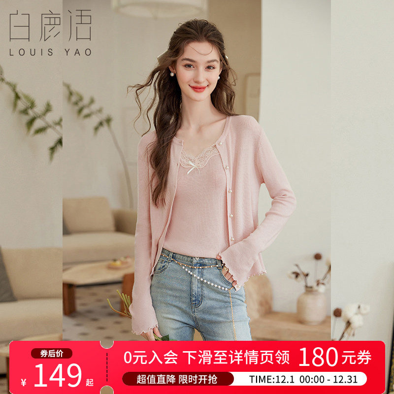 白鹿语甜美温柔针织衫套装25秋新款蕾丝拼接吊带背心开衫两件套
