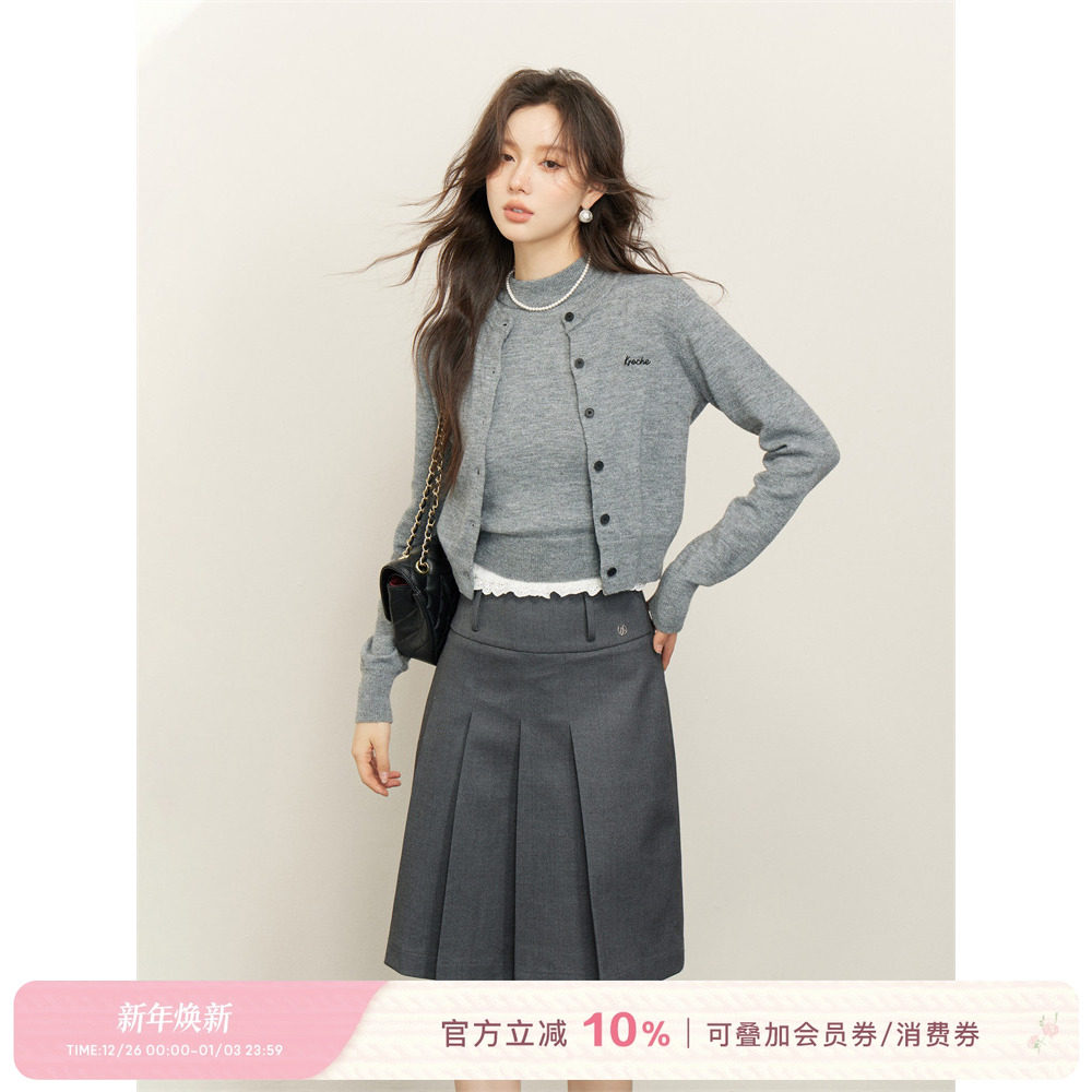 Kroche 25aw 冬日来信 羊毛混纺 波浪花边领针织背心开衫两件套