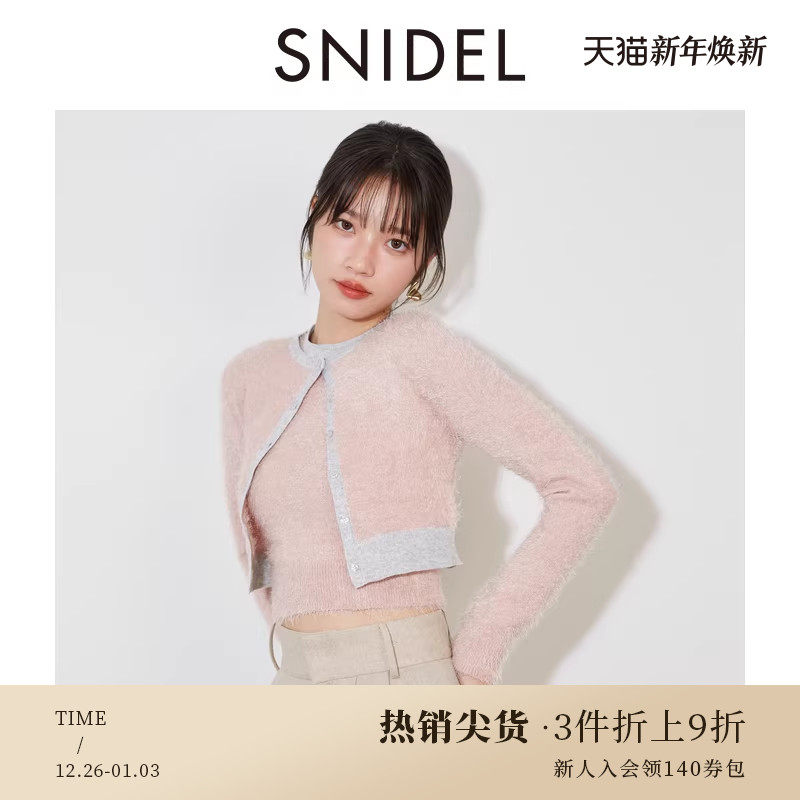SNIDEL秋冬款毛绒感拼色圆领针织背心开衫两件套SWNT244166