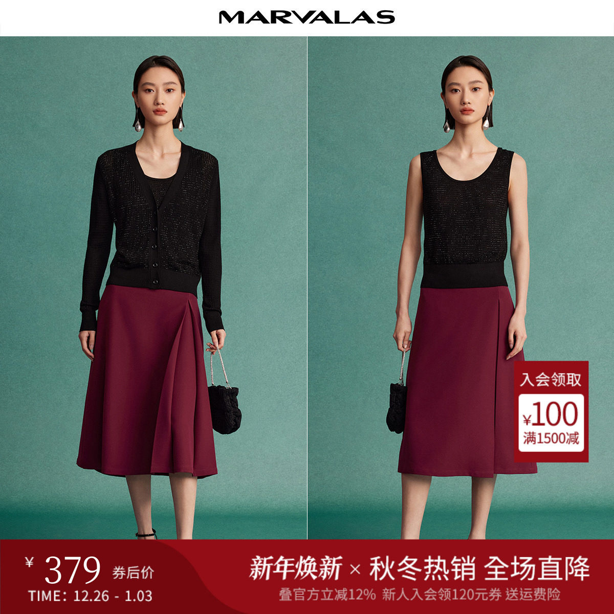 - 长款毛衣裙 两件套