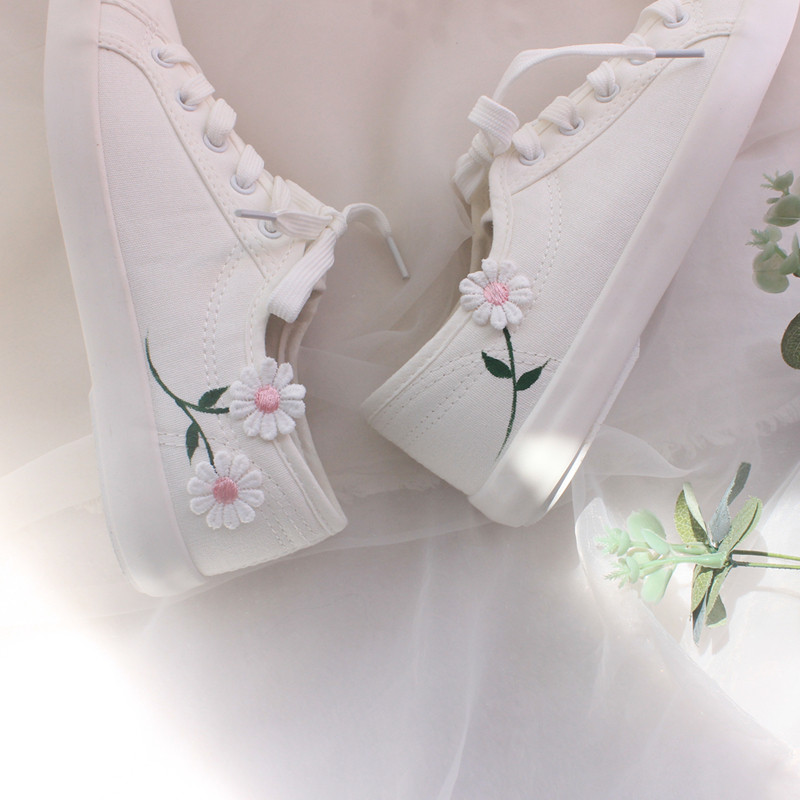 夏季小雏菊女民族风搭配文艺清新帆布小白鞋单色休闲低帮女帆布鞋