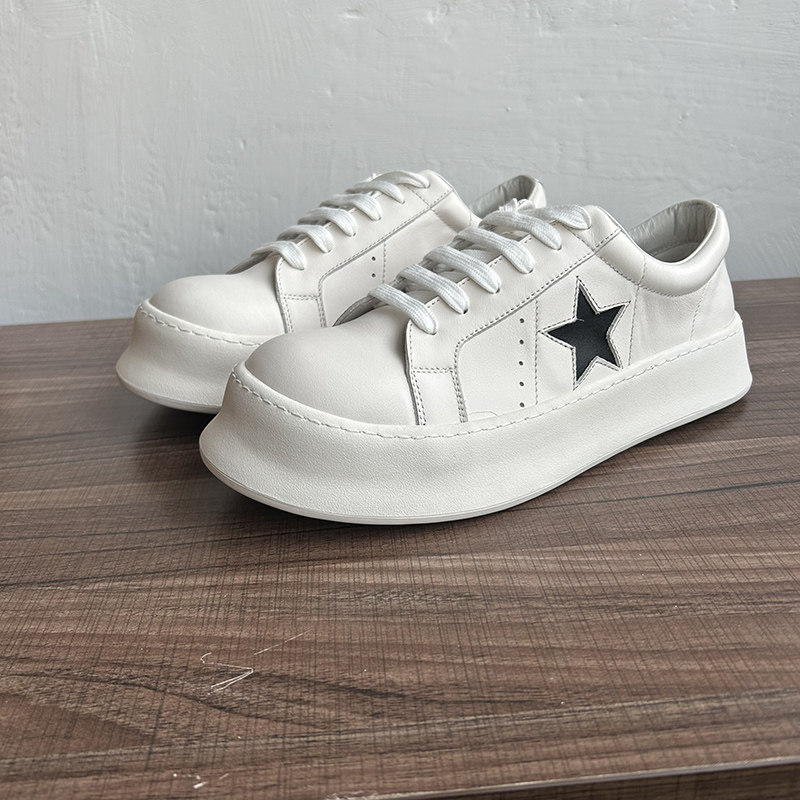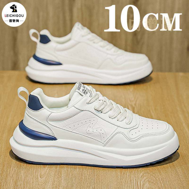 2025夏季柔软小白鞋男 男士厚底潮鞋白色真皮板鞋英伦透气休闲鞋