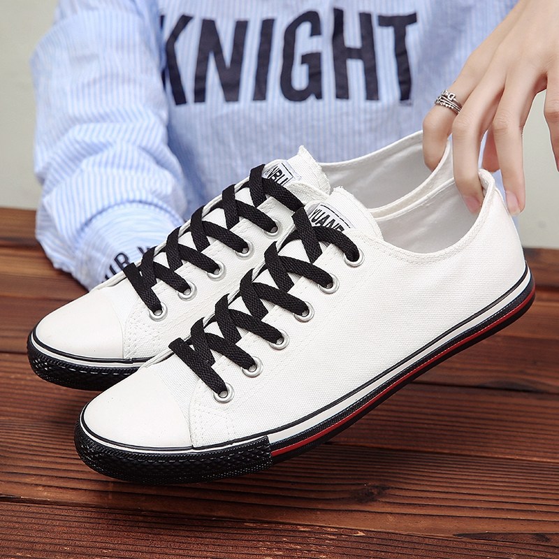 远步帆布鞋男平跟秋季小白鞋百搭时尚文艺系带学生韩版情侣款女鞋