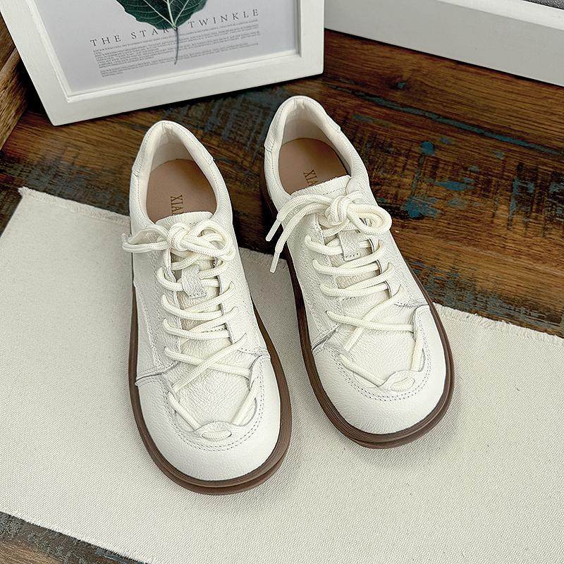 森系文艺真皮小白鞋休闲系带圆头厚底复古马丁鞋2025春季单鞋女鞋