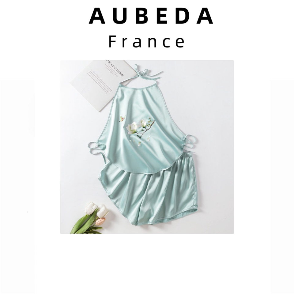 法国 Aubeda 复古中国风刺绣苏绣肚兜套装女士露背式性感吊带睡衣