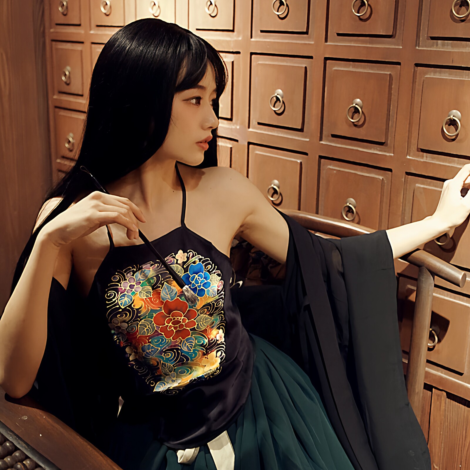 100%真丝性感肚兜女成人新中式内衣诱惑小吊带国潮古风汉服睡衣套