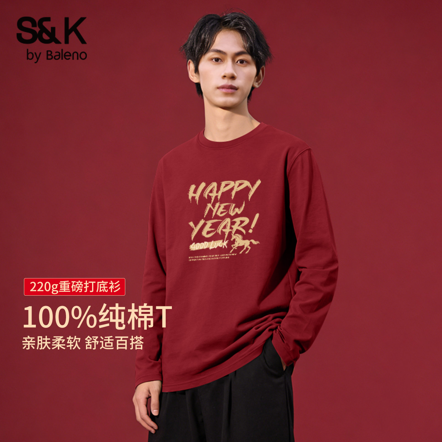 班尼路S&K系列红色长袖体恤男2026马年本命年衣服男士内搭上衣LF