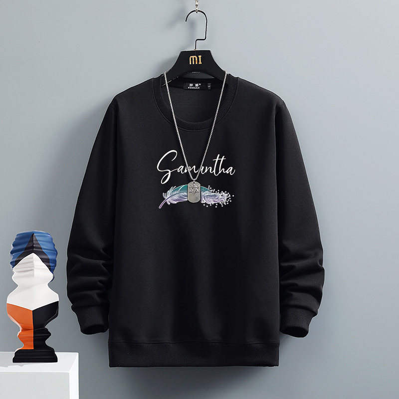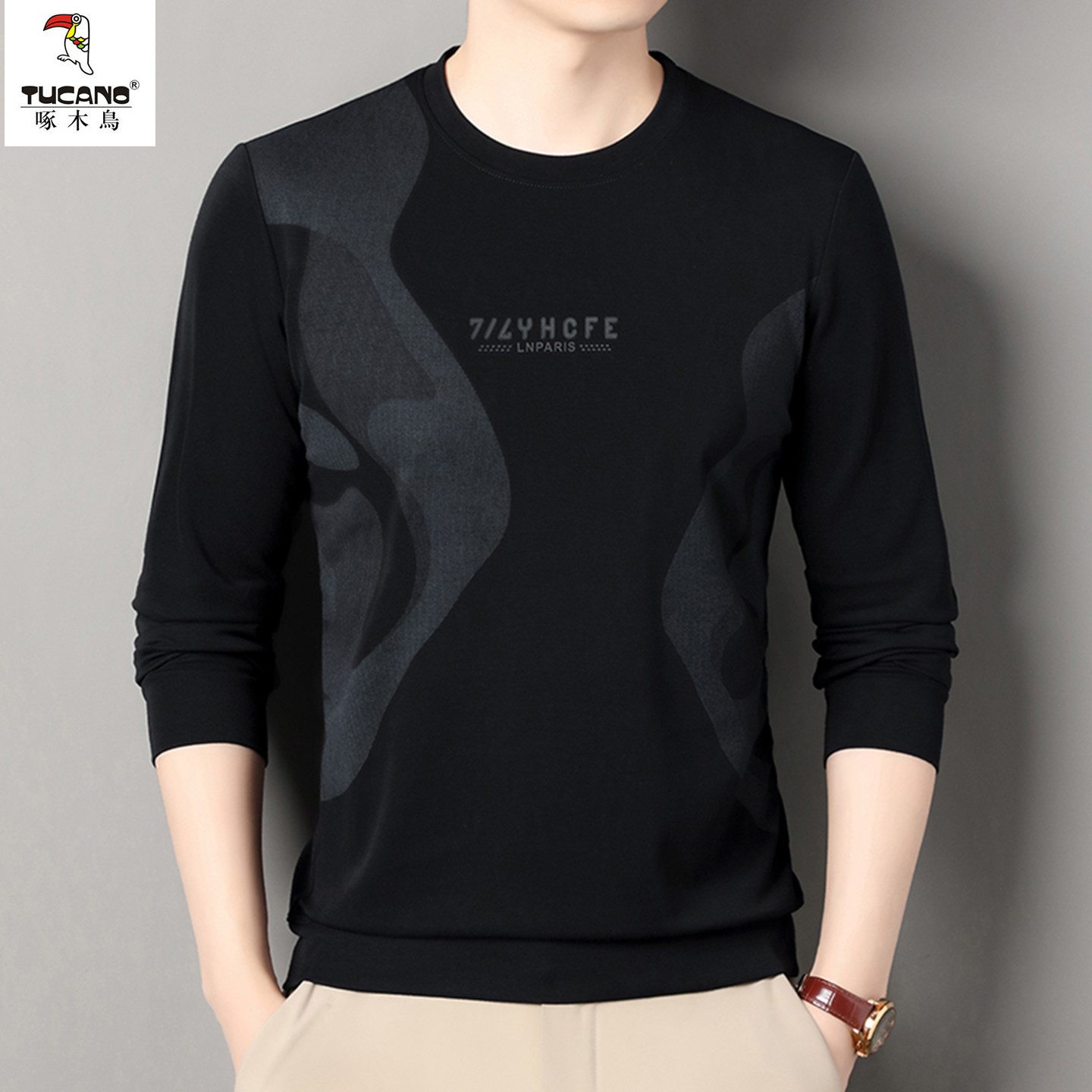 啄木鸟春秋季圆领卫衣休闲长袖体恤男款新款宽松加绒内搭打底衫男