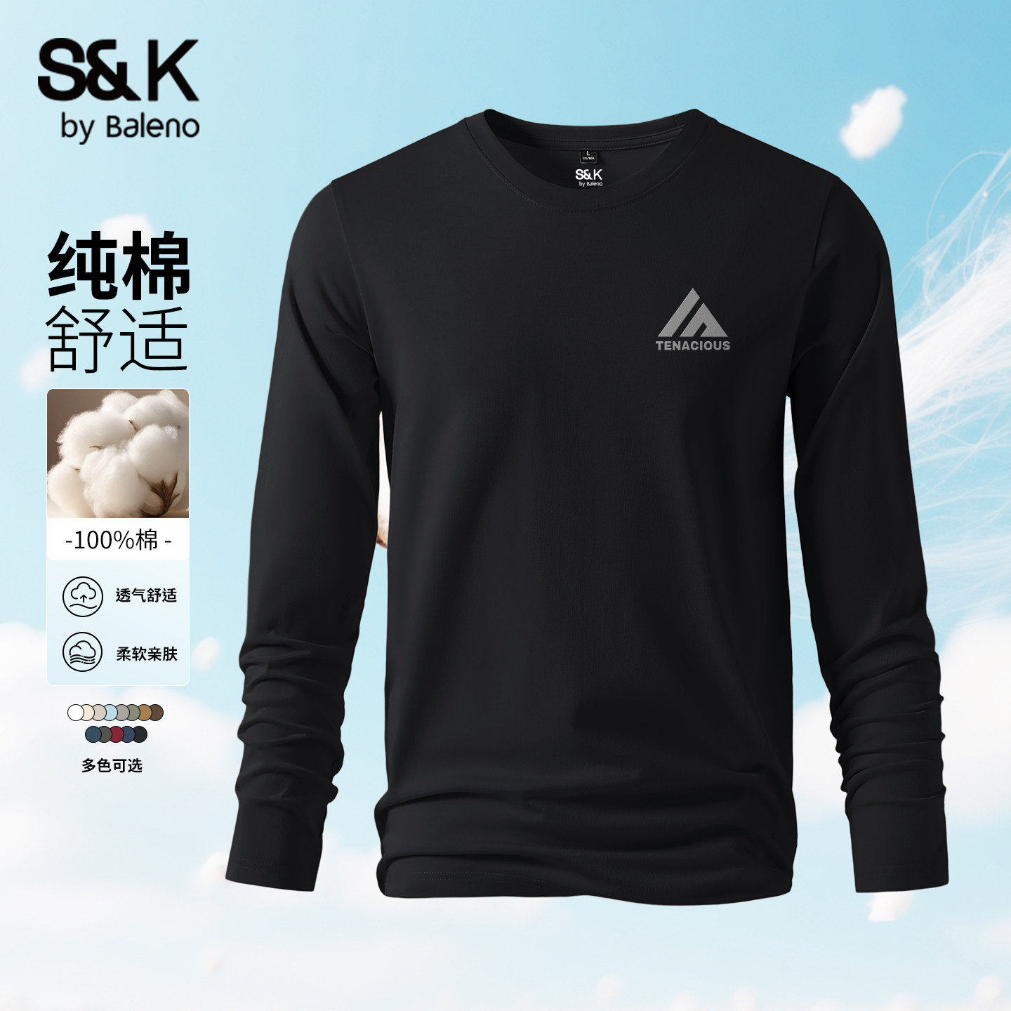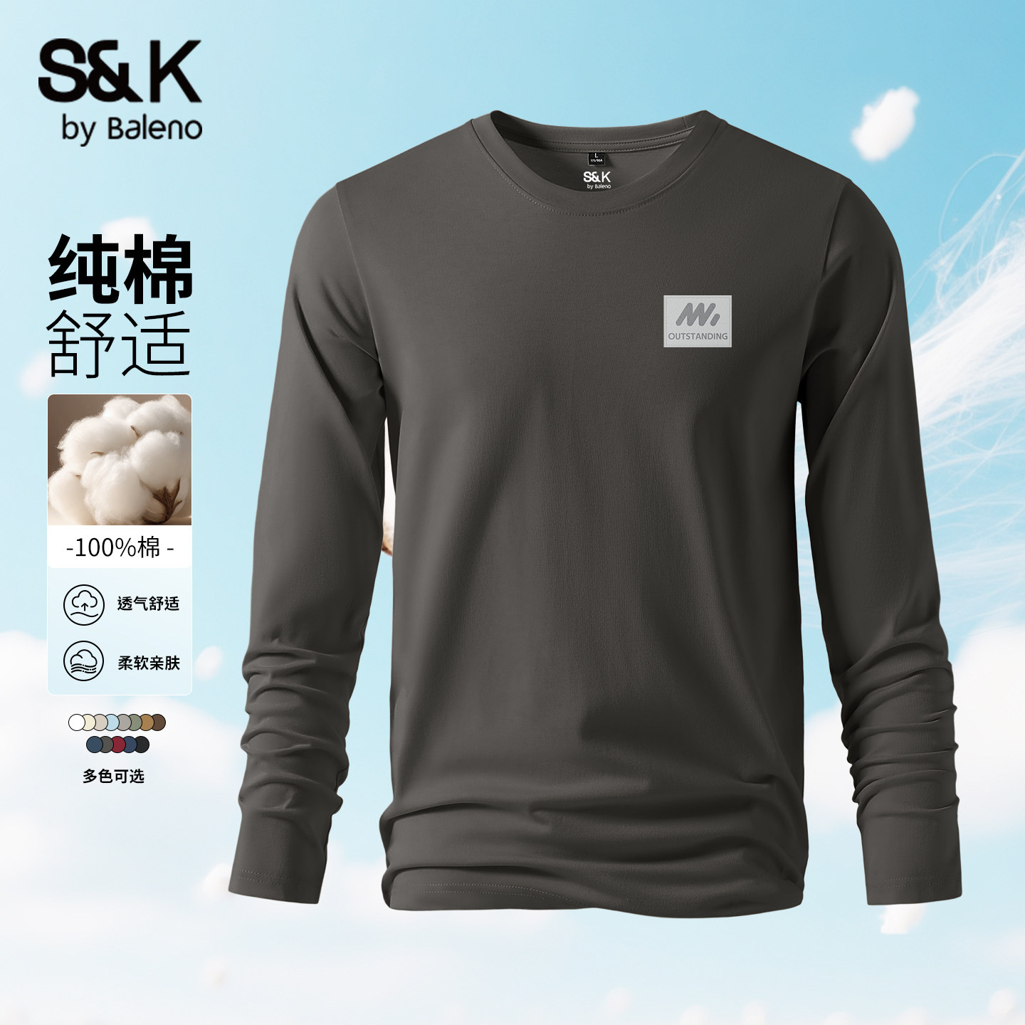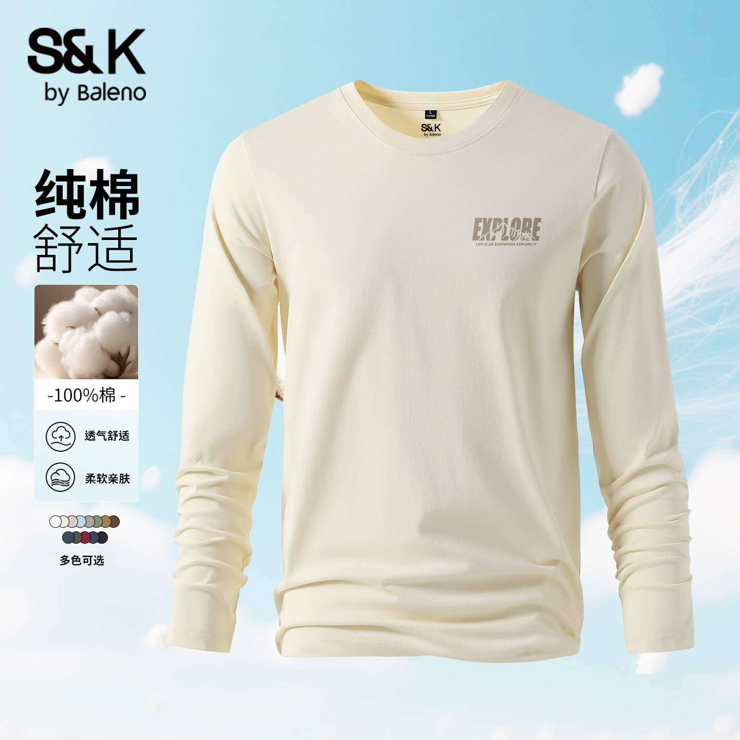 班尼路S&K系列纯棉长袖体恤男士2026新款圆领上衣男休闲打底衫LF