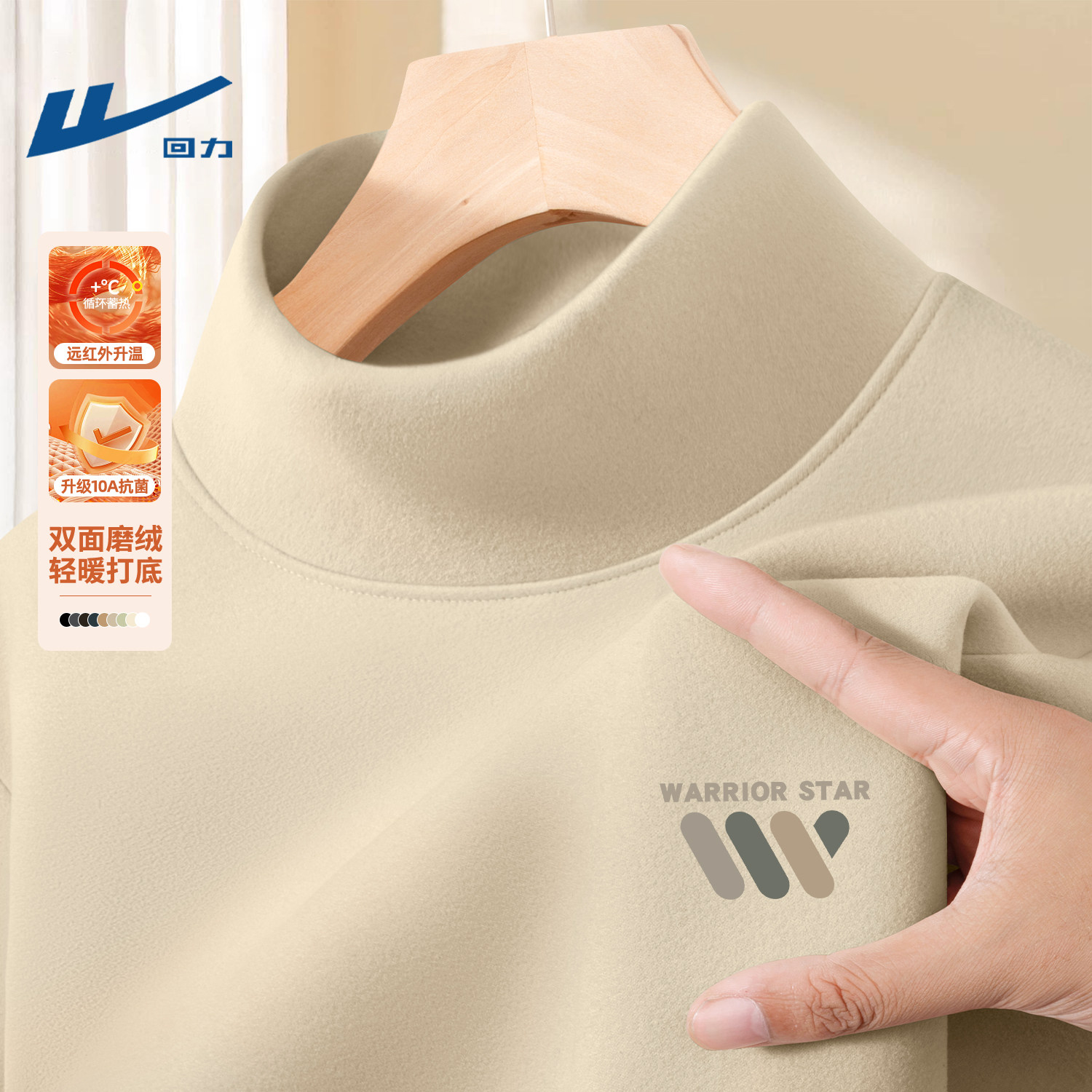 回力半高领打底衫男冬季加绒加厚内搭保暖衣抓绒磨毛正肩长袖t恤Y