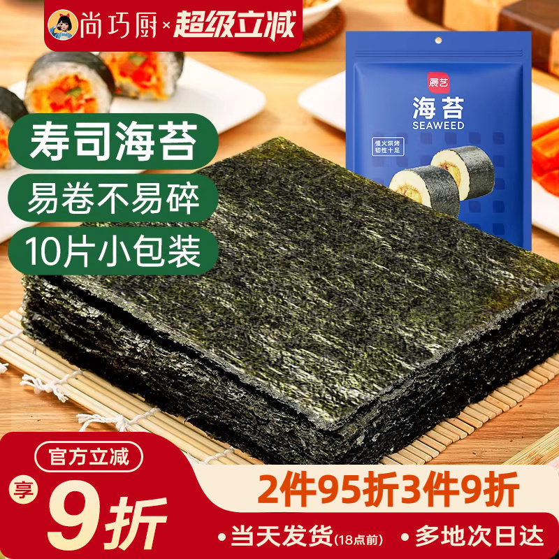 尚巧厨展艺寿司海苔紫菜包饭专用寿司帘肉松国产海苔片材料旗舰店