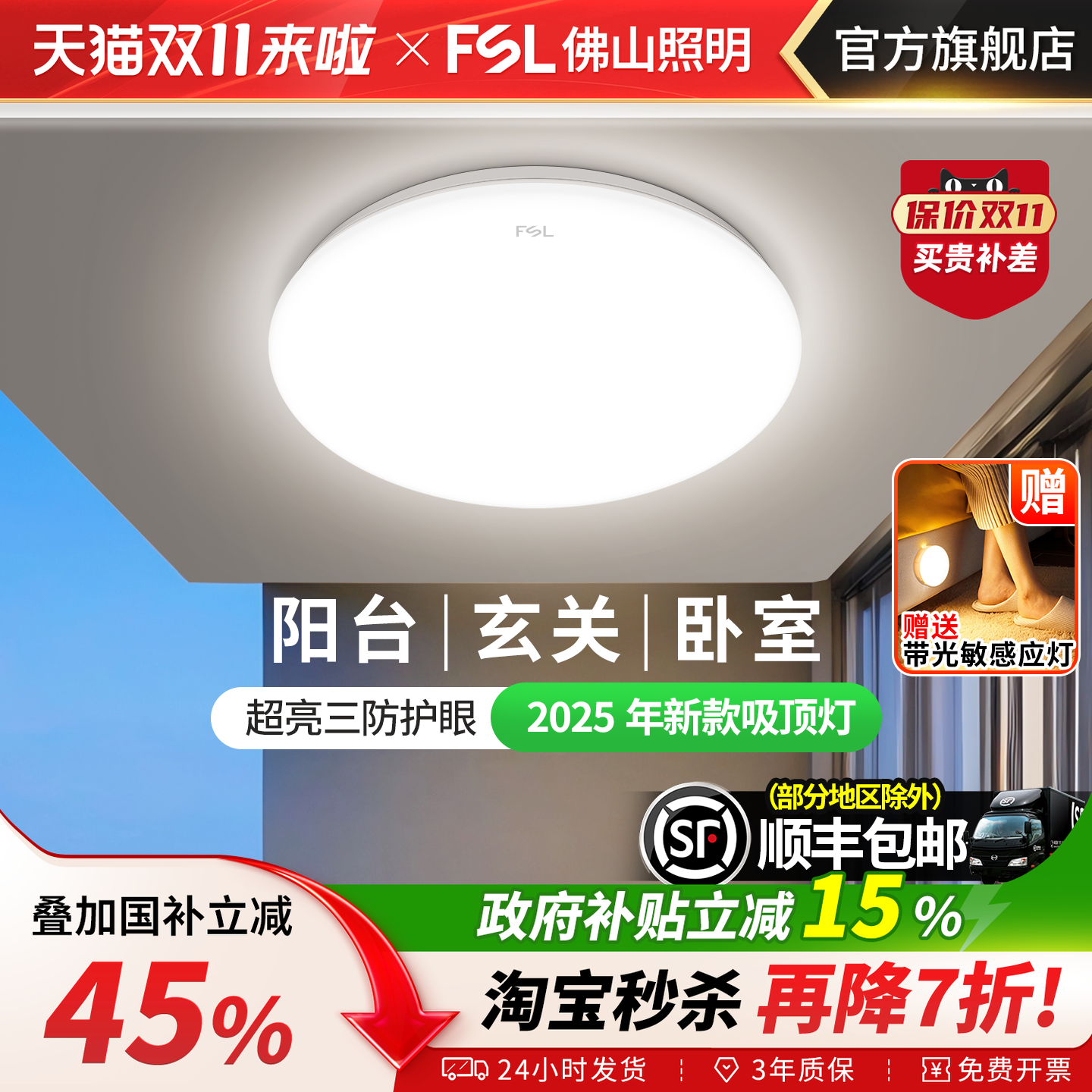 FSL佛山照明led吸顶灯2025新款主卧室灯超薄三防入户灯过道阳台灯