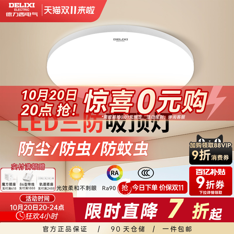 德力西LED三防吸顶灯简约灯饰过道灯走廊灯阳台灯玄关卧室防虫灯