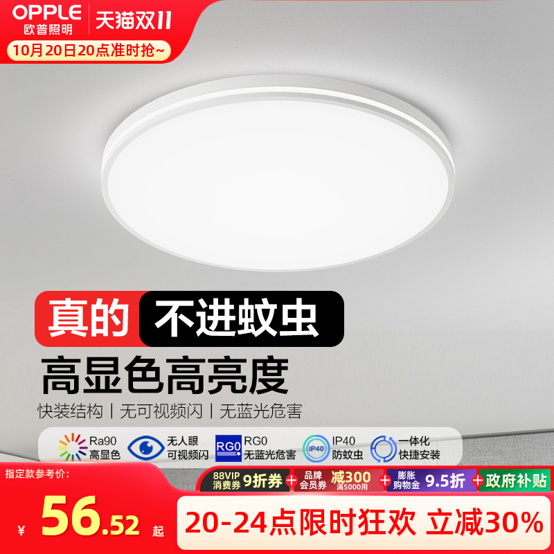 欧普全光谱led吸顶灯卧室餐厅书房阳台过道灯简约灯具灯饰智能WS