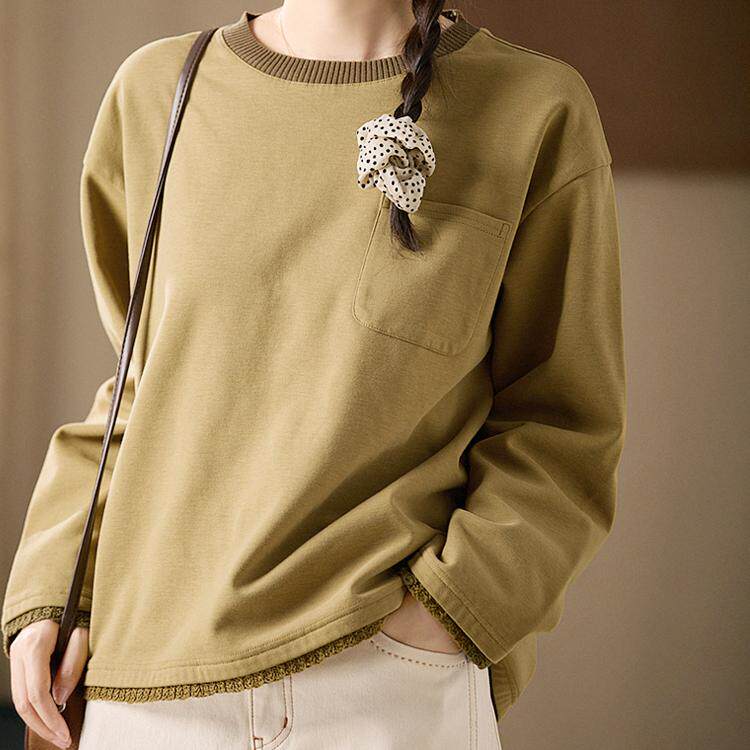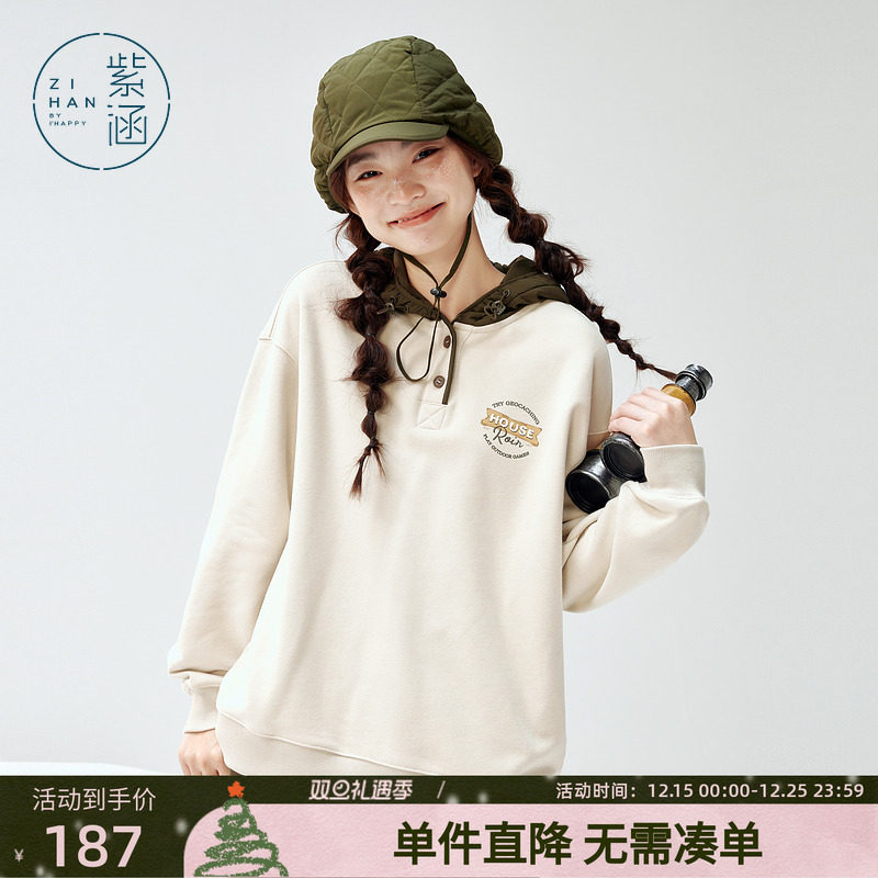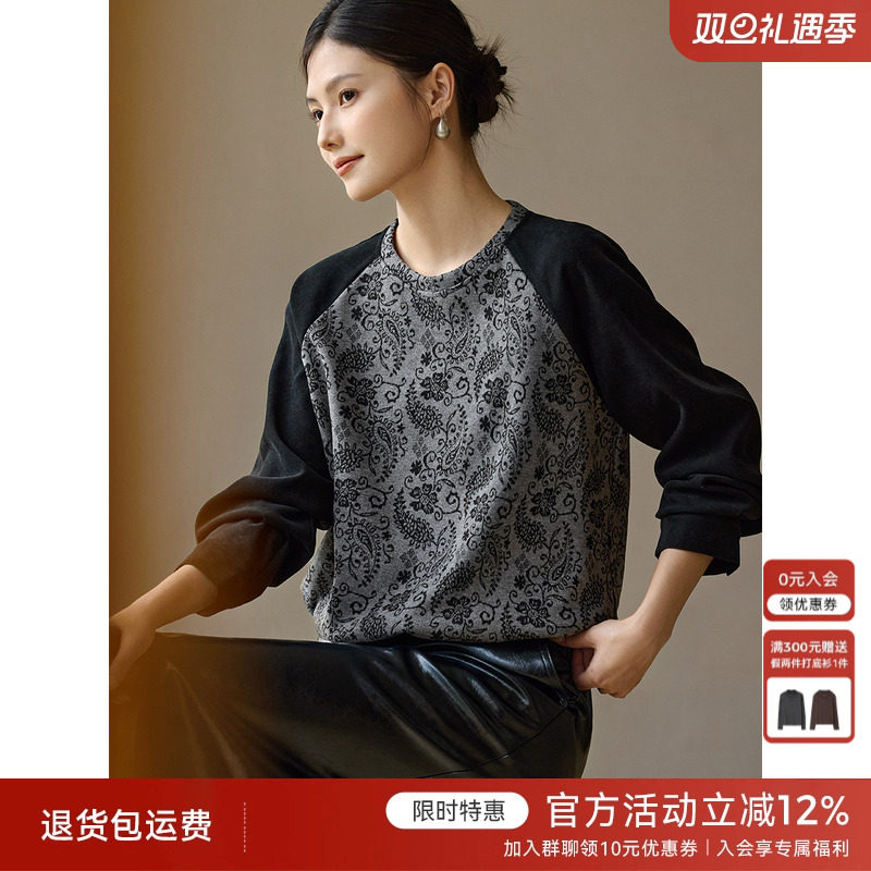 谷家 原创文艺磨毛保暖小众拼接卫衣女 2025新款棉质宽松套头上衣