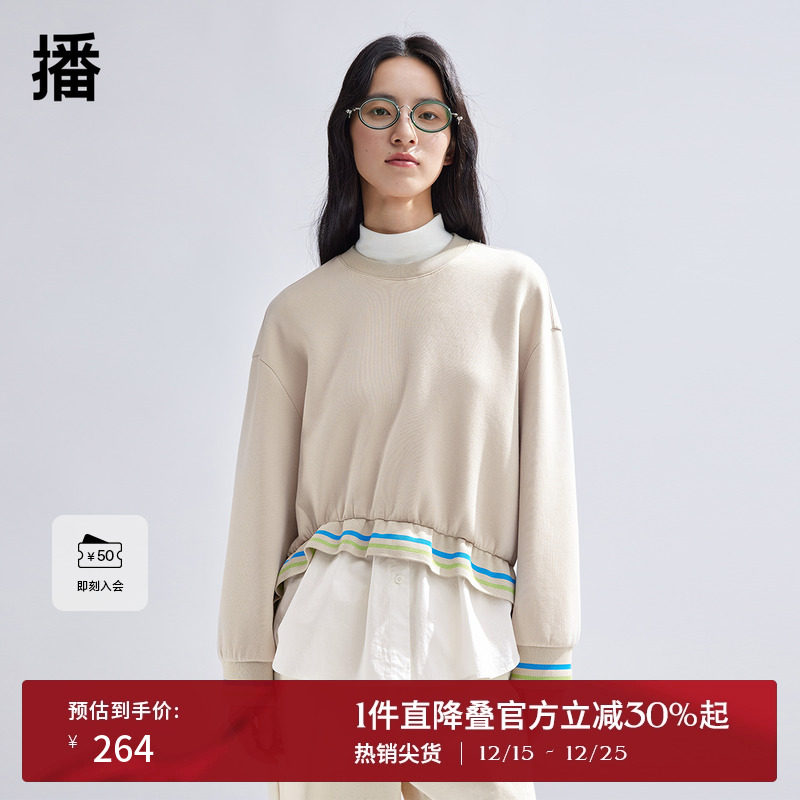 播设计感拼接卫衣女商场同款2024新款慵懒短款套头上衣BDR1VD0246