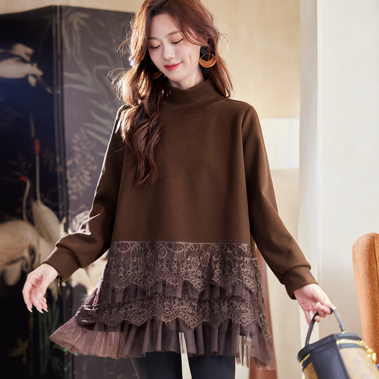 宝诗黎半高领蕾丝拼接卫衣女2025冬季洋气复古百搭休闲棉质上衣