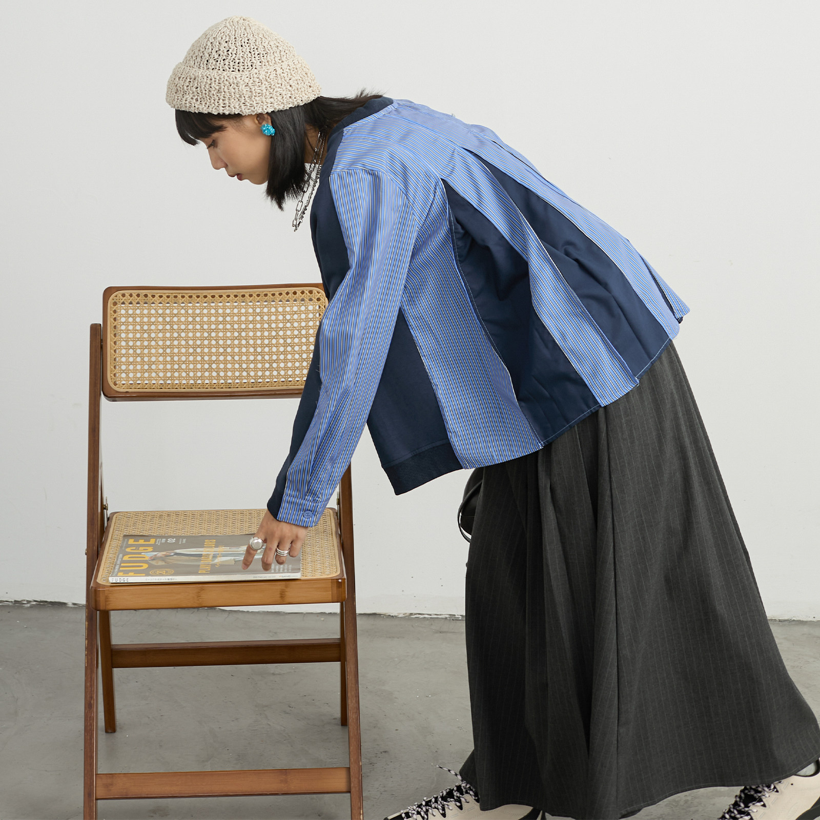 GCRUES商场同款假两件衬衫拼接卫衣女冬季设计感上衣 G09D15A0162