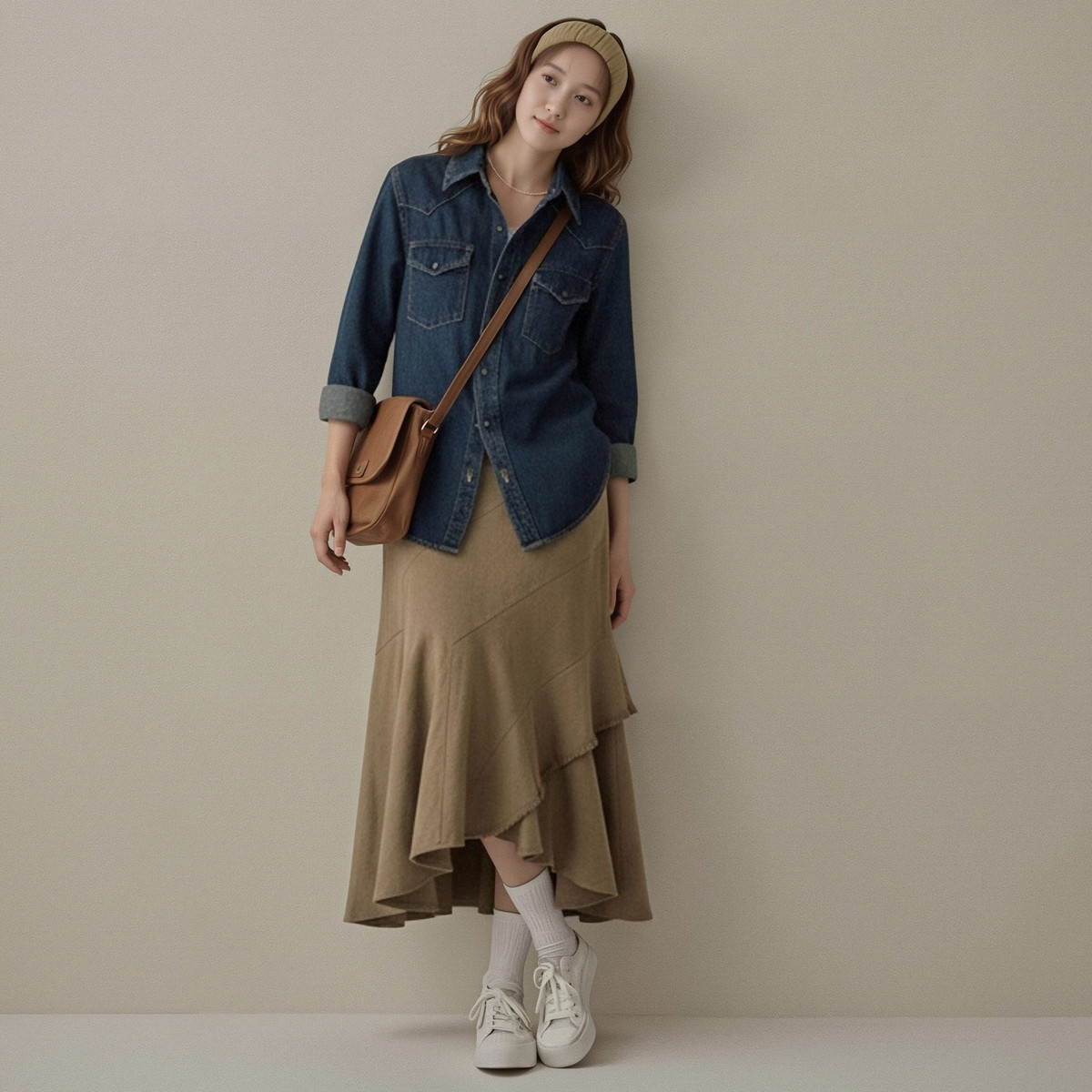 - 蓝衬衫宽松女