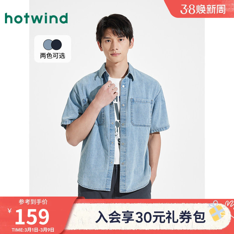 热风男士衬衫2026年春季新款牛仔衬衣美式复古潮牌情侣短袖上衣