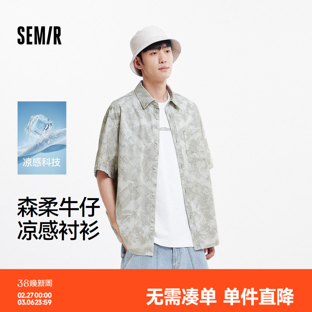 森柔|森马短袖衬衫男夏季牛仔衬衣外套凉感宽松半袖轻薄上衣潮流