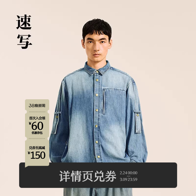 【Samuel Drira联名】速写秋冬新款休闲宽松牛仔衬衣复古潮衬衣