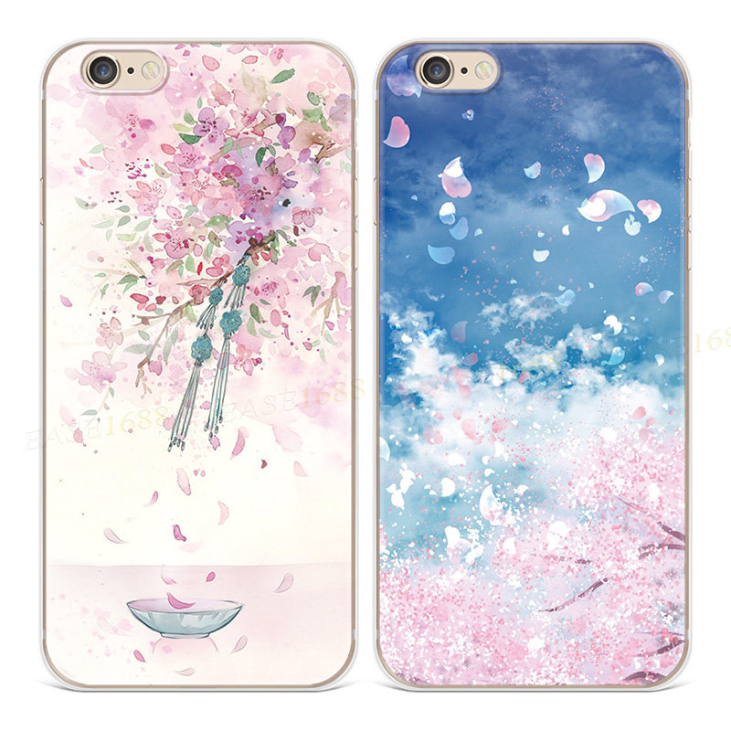 日系樱花适用iPhone8plus苹果13手机壳14promax文艺7插画6s唯美女款5se第一1二2三3代五六七八十四