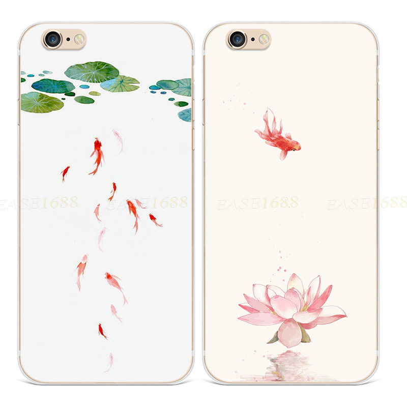 金鱼莲花XR适用iPhone8plus苹果13手机壳14ProMAX女款6/6S文艺7小清新5se第一1二2三3代五六七八十四简约