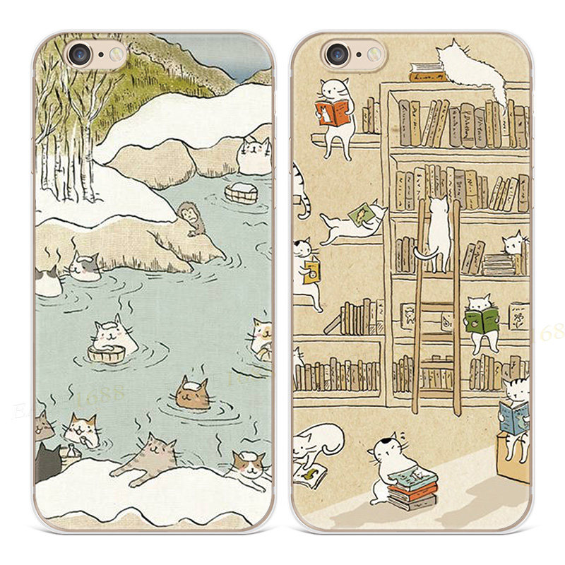 复古猫咪适用iPhone8苹果13手机壳14promax可爱7plus女款6s插画5se第一1二2三3代五六七八十四