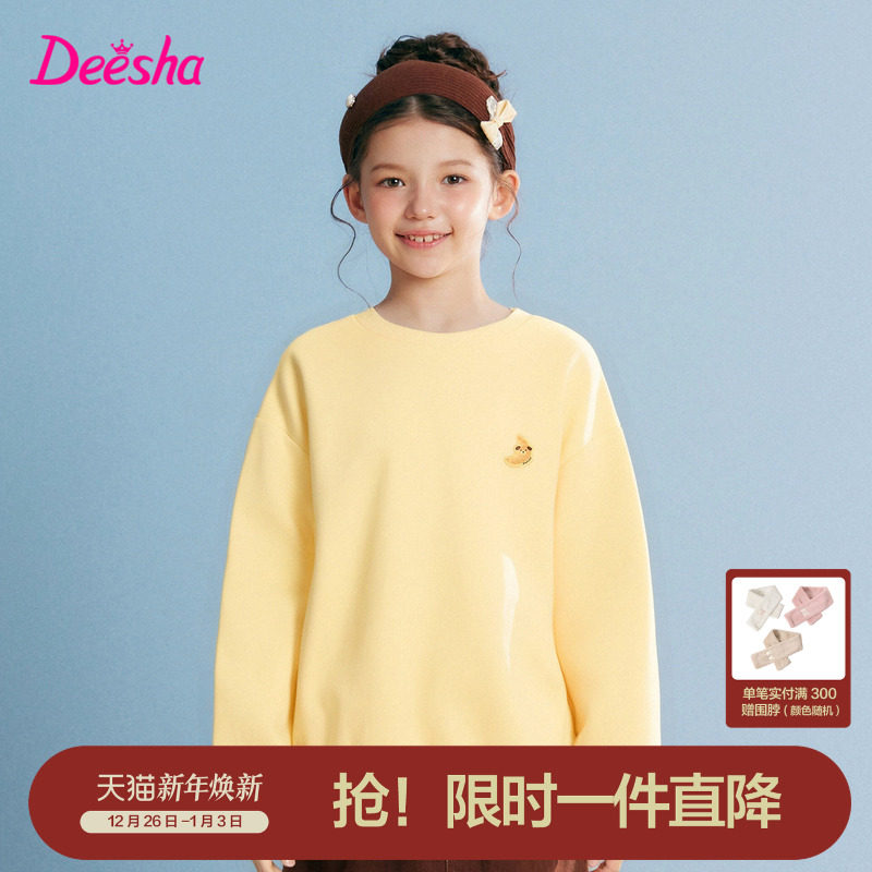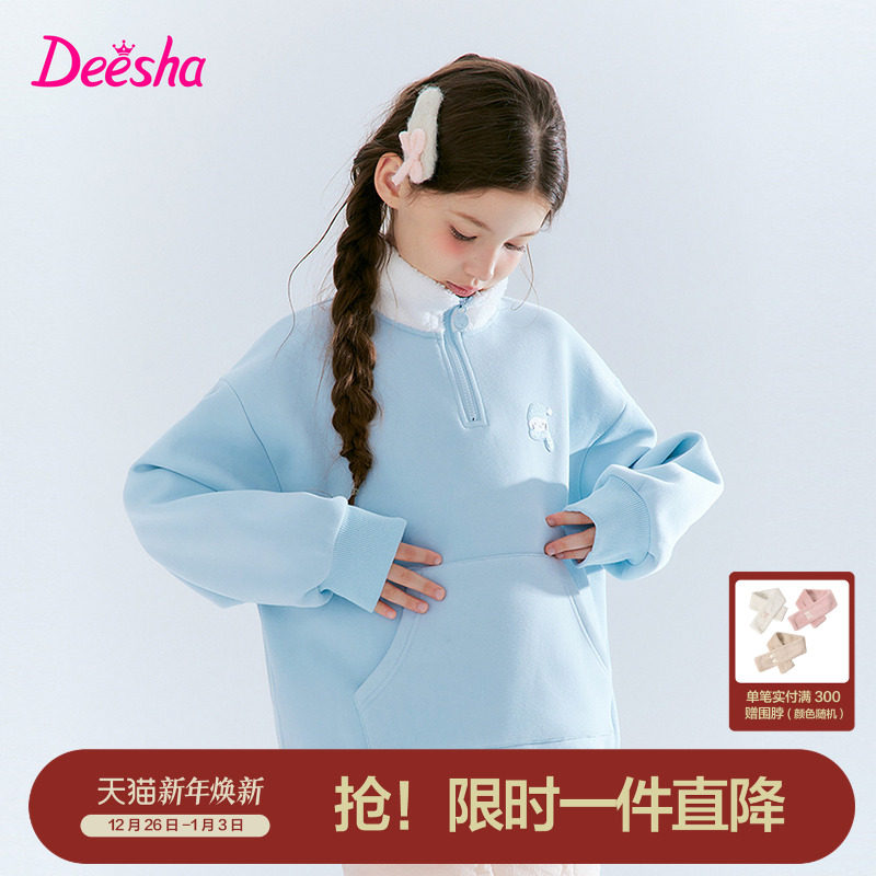 笛莎官方旗舰童装女童加绒卫衣冬季新款女孩儿童时尚保暖加厚上衣