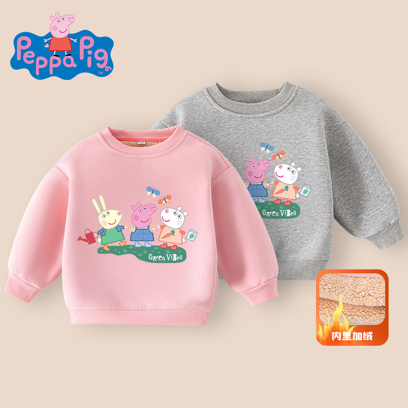 小猪佩奇宝宝羊羔绒儿童卫衣加绒加厚女童男童内搭打底衫冬季毛衣
