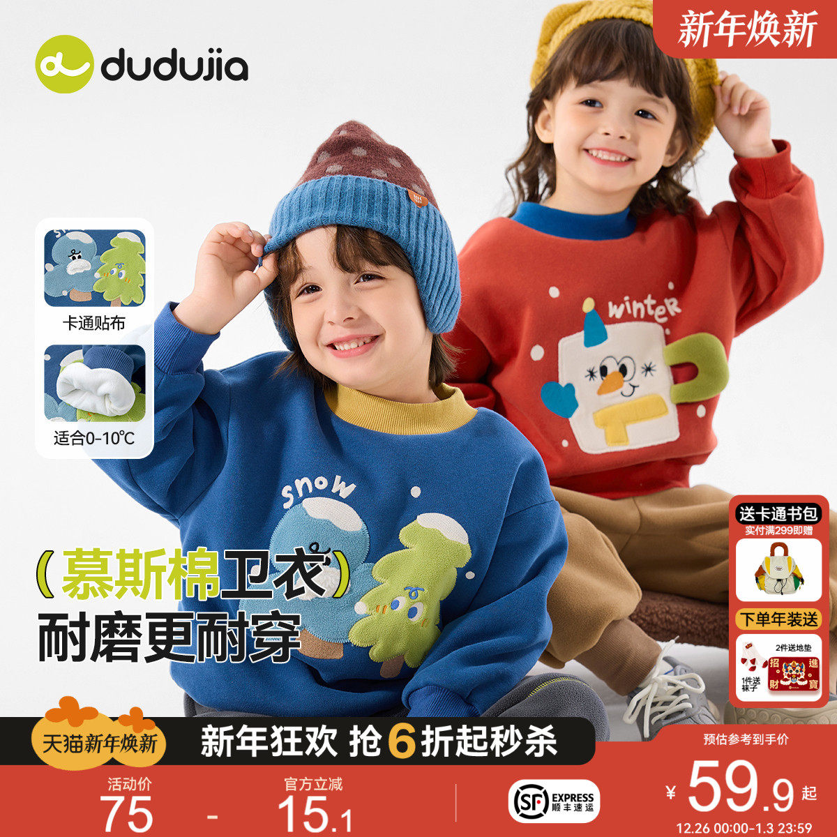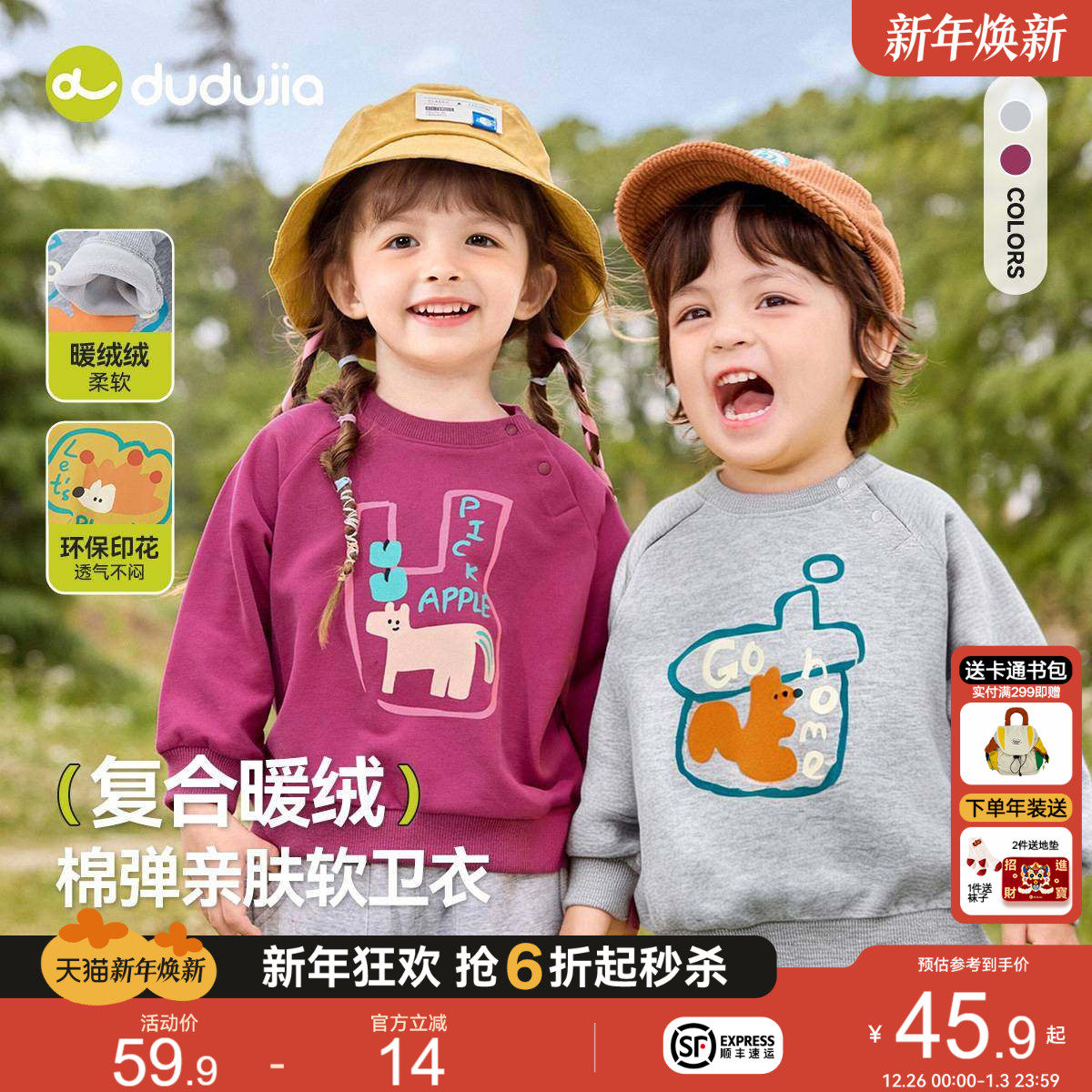 嘟嘟家宝宝卫衣红色男童冬装儿童拜年服女童上衣冬季加绒加厚保暖