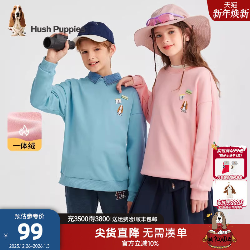 暇步士童装儿童加绒卫衣男童秋冬新款女童宝宝宽松休闲加厚套头衫