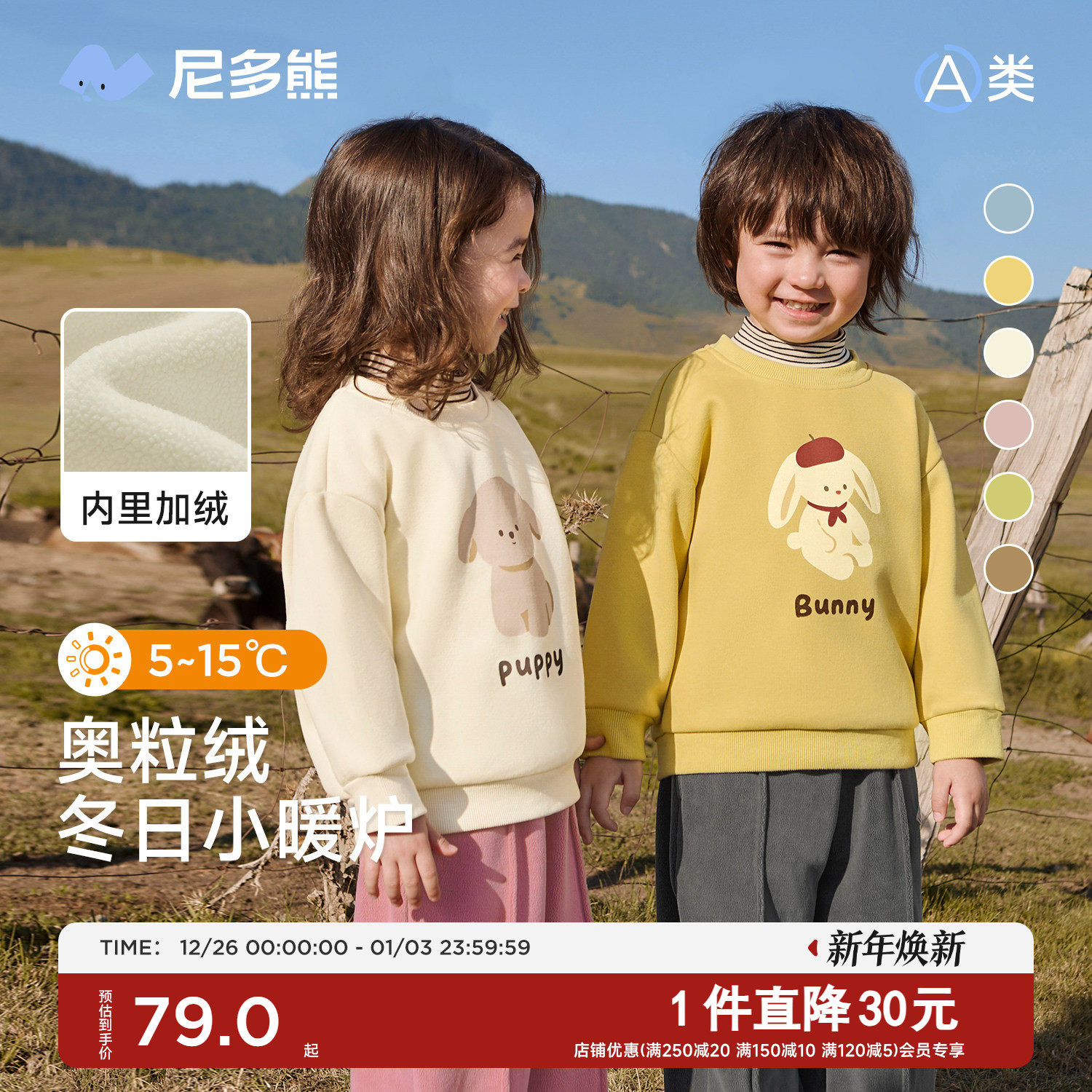 尼多熊25冬季新款儿童加绒卫衣男童女童半高领宝宝加厚长袖上衣