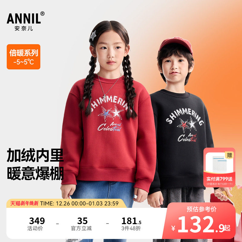安奈儿童装男女童圆领长袖卫衣2025冬新款休闲加绒加厚宽松保暖