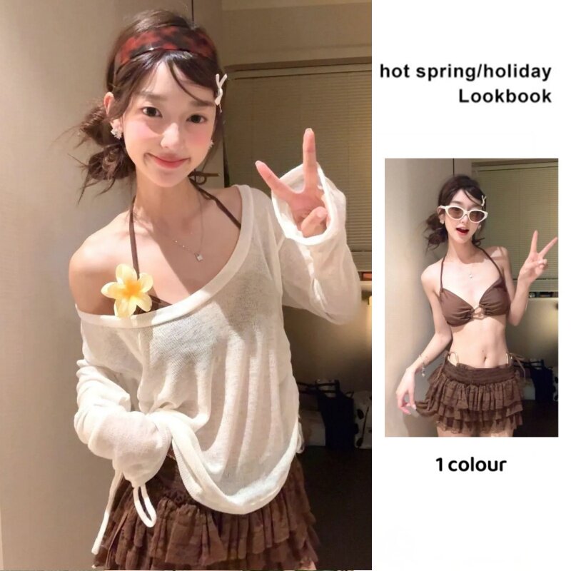 爆款酷辣妹泳衣女分体三件套罩衫比基尼显瘦甜美韩版度假超仙温泉