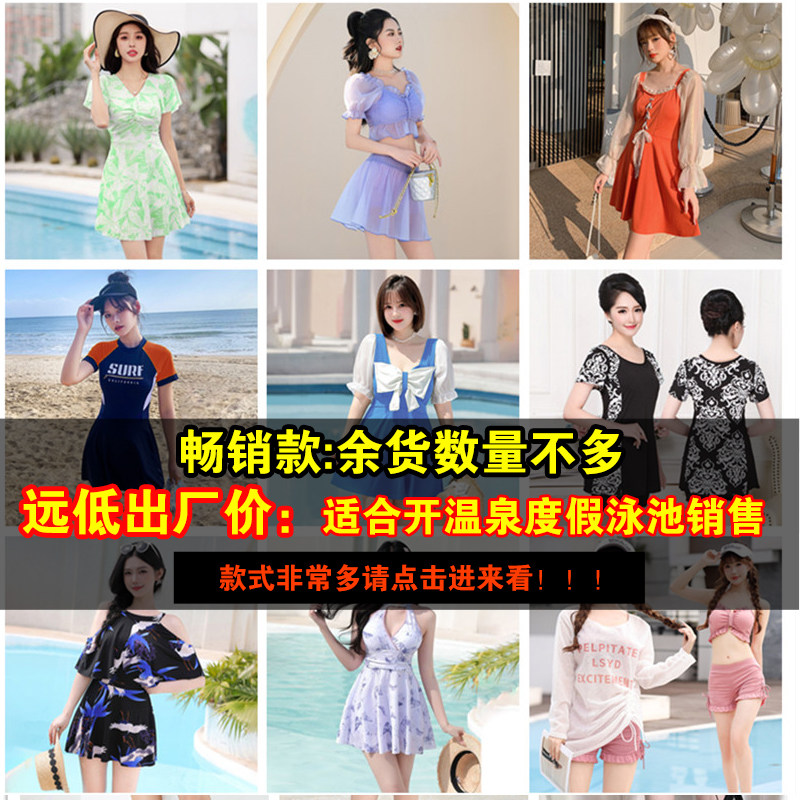 绝美超显瘦微胖女孩遮肉泳衣女大胸连体裙式保守遮肉海边沙滩度假