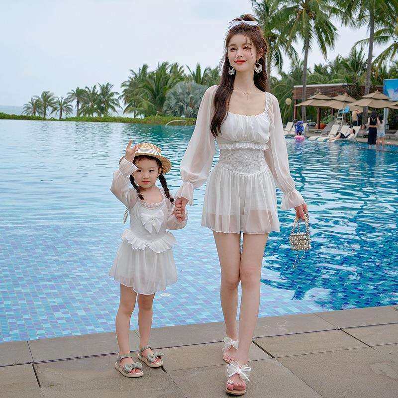 新款亲子泳衣时尚白色超仙儿仙女公主裙显瘦母女连体泳衣儿童泳装