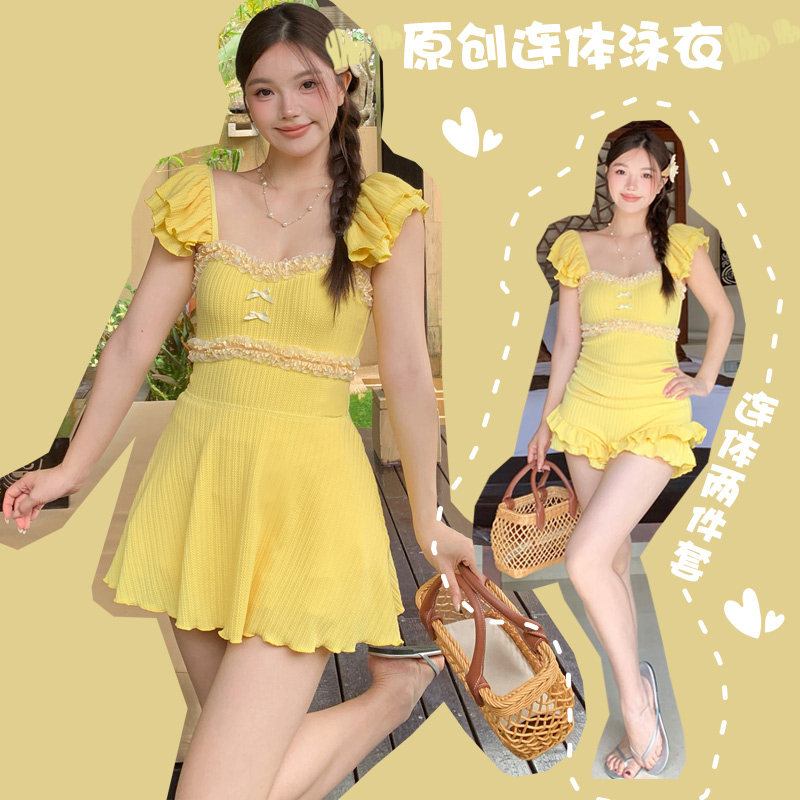 蕾丝泳衣女款保守遮肚显瘦泡温泉度假韩国ins超仙性感纯欲游泳装
