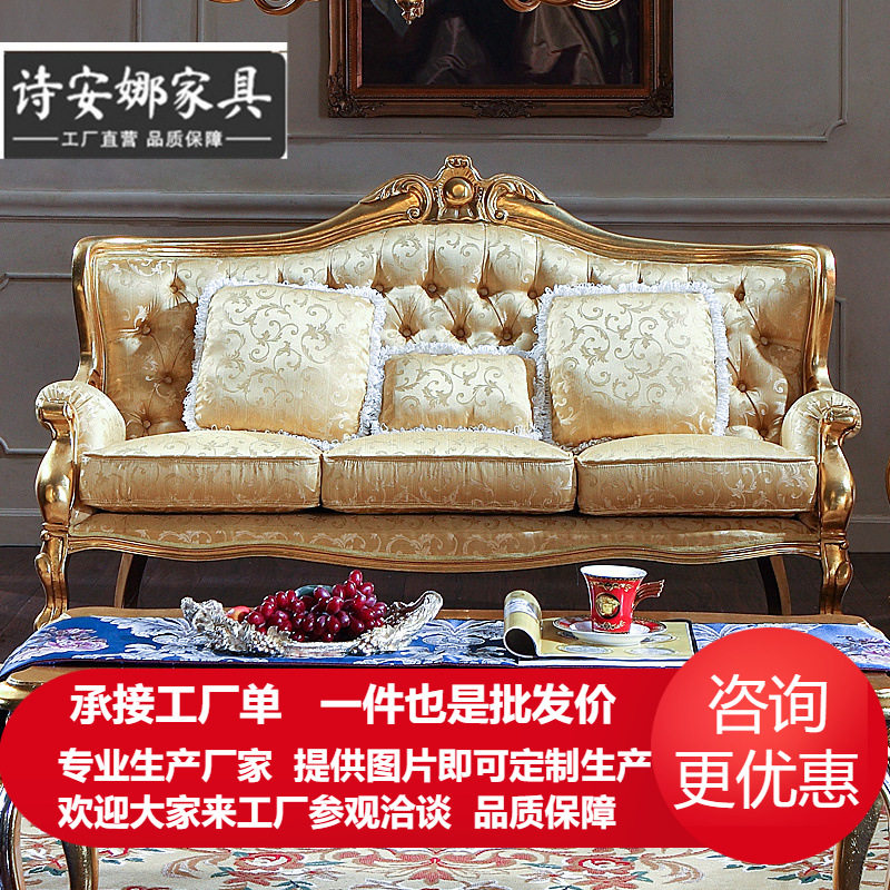欧式布艺沙发组合客厅实木雕花沙发法式宫廷家具复古奢华别墅沙发